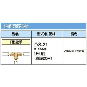 - OS-21 コロナ 温水ルームヒーター関連部材 油配管部材 T形継手
