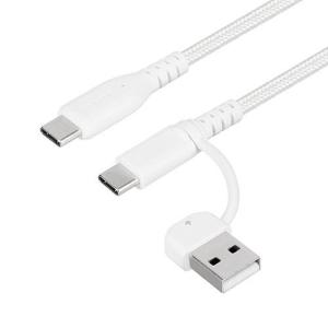 - オウルテック(OWLTECH) OWL-CBA5ACC15-WH ホワイト 断線に強い 最大PD60W充電/データ転送 USB Type-A/USB Type-C to USB Type-C 2in1ケーブル 1.5m