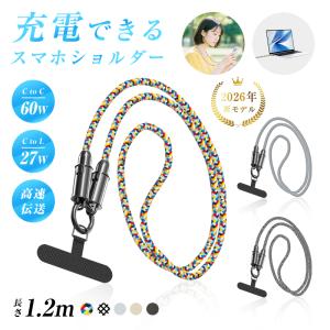 スマホショルダーケーブル 充電ストラップ 長さ1.2m iPhone17/16/15対応 iOS/Android対応 PD対応 27W 60W 便利グッズ 落下防止【PL保険加入済み製品・安心】