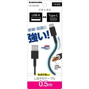 - 多摩電子 Type-C to USB-A ロングブッシュケーブル 50cm(ブラック) TSC149CA05K 返品種別A
