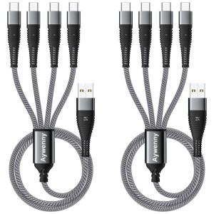 - 2本セット 4 in 1高耐久編組ナイロン多機能充電ケーブル、USB急速充電ケーブル、4種類のインターフェースTypeC*4 を持ち、4台の