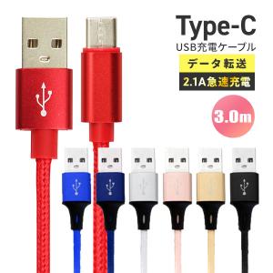 USBケーブル 充電ケーブル 3.0m 300cm USB Type-Cケーブル データ転送 タイプC iPhone15 Android 充電器 2.1A急速充電 モバイルバッテリー 断線しにくい