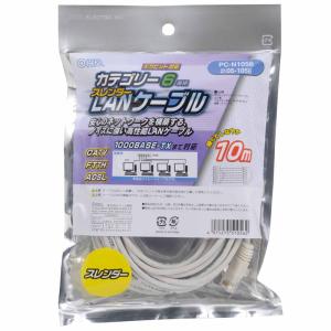 - オーム電機 LANケーブル カテゴリー6 スレンダー 10m05-1056 PC-N1056[パソコン・スマホ関連:LANケーブル]