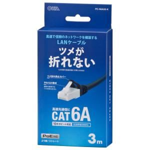- つめが折れないLANケーブル CAT6A 10m [品番]05-1074 PC-N6A100-K ([パソコン・スマホ関連:LANケーブル] オーム電機) 爆買