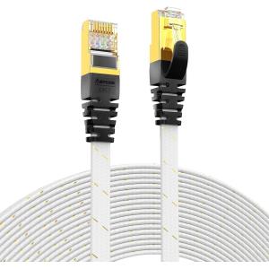- CAT7準拠STP 高速LANケーブル 10Gbps/600MHz RJ45 フラットインターネットケーブル 組紐 MDM (ホワイト, 3M)