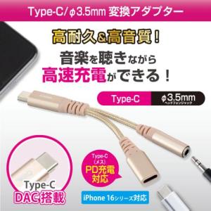 - オーム電機(OHM) SMT-P7318-N ゴールド AudioComm 変換アダプター Type-C 3.5mm PD対応 高耐久 01-7318