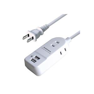 - カシムラ(Kashimura) WM-16-WH ホワイト 国内・海外兼用電源タップ Aタイプ AC3P USB2P 2.4A 1m