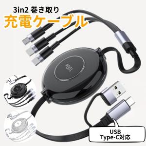 - 3in1 3in2 iPhone17 充電 巻き取り 充電ケーブル Android iPhone 急速充電 コンパクト Type-C Micro USB Lightning 収納 旅行 防災 災害 マルチケーブル 非常用