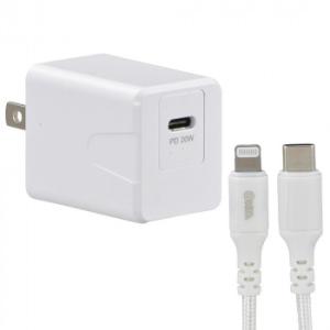 - OHM AudioComm AC充電器 PD超高速充電 20W ライトニングケーブル着脱型 MIP-APD20W-W