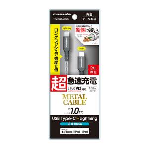 - 多摩電子 USB-C to Lightningロングブッシュケーブル 1.0m(ブラック) TSC212LC10K 返品種別A