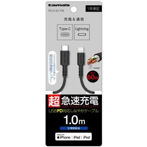 - 多摩電子 Lightning ソフトタフケーブル 1.0m(ブラック) TSC245LT10K 返品種別A