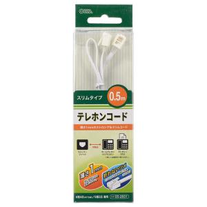 - オーム電機 テレホンコード スリムタイプ 0.5m ホワイト TEL-C2631S
