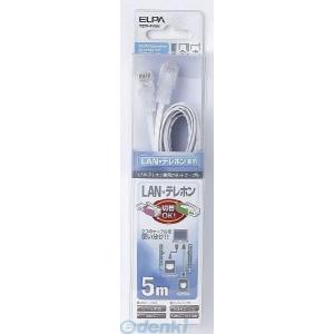 - 【納期:約1週間】朝日電器 ELPA TEW-F050 TEL・LAN兼用フラットカテ6 5m TEWF050 エルパ