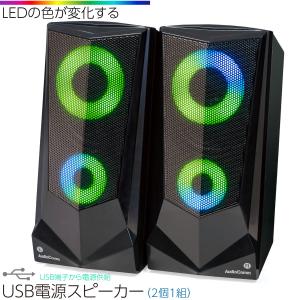 - スピーカー 有線 パソコン USB電源スピーカー AudioComm LEDイルミネーション機能付き|ASP-U175Z 03-5056 オーム電機