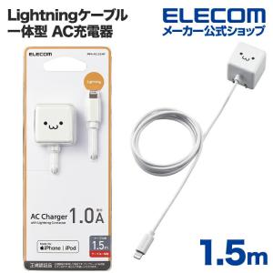 - エレコム Lightning AC充電器 5W Lightningケーブル 一体型 AC充電器 ライトニングケーブル 1.0A出力 ケーブル 一体 1.5m ホワイトフェイス┃MPA-ACL02WF