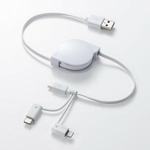 - ライトニング・TypeC・microB 巻取りUSB 3in1 ケーブル 0.8m[SAN] ポイント利用