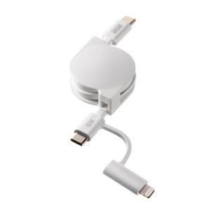 - サンワサプライ USB2.0 Type-C巻き取りケーブル(Lightning変換アダプタ付き) KB-IPLTCM08W 返品種別A