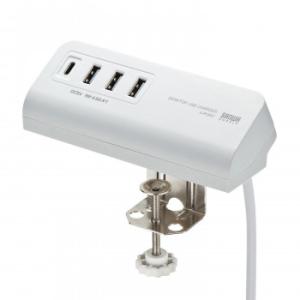 - サンワサプライ クランプ式USB充電器 TypeC1ポート+USB3ポート ホワイト ACA-IP51W