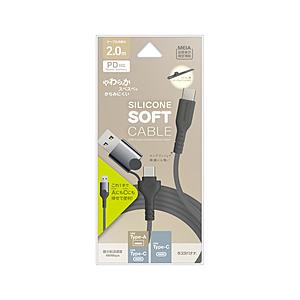 - ラスタバナナ Type-C 柔らかシリコンケーブル 2.0m(チャコールグレー) R20CAAC3A05CGRY 返品種別A