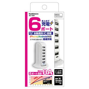 - USB充電器 AC-6USB-8A 自動識別 ホワイト AC-029 (充電 携帯 スマホ タブレット 6ポート白 カシムラ) 爆買