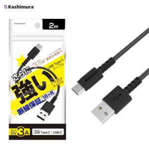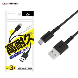 - USB充電 同期ケーブル ブラック 2m Type-AtoC 5V 3A データ転送 スマホ充電 Kashimura AJ-627