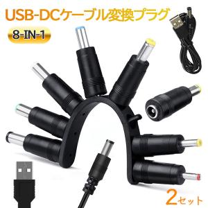 - USB DC 変換ケーブル 8in1 2本セット ジャック 変換 アダプタ USB-DC 変換 USB ケーブル アダプター 8個 充電コー