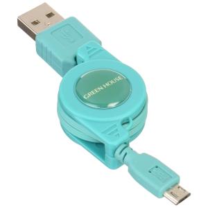 - GREEN HOUSE 巻き取り式 microUSB充電ケーブル ブルー GH-UCRMB-BL