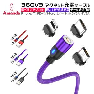 - 3本セット 0.5m1m 2m マグネット 充電ケーブル 3A急速 USBマグネット ケーブル QC3.0 急速充電 android Type-