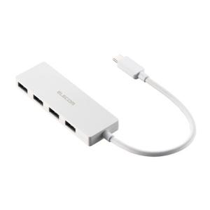 - ELECOM U2HC-H040WH Type-C ハブ USB2.0 USB-A ×4 バスパワー コンパクト 薄型 ケーブル長15cm ホワイト