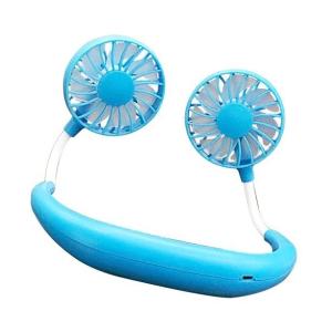 - ネックバンドファン ブルー 首掛け扇風機 角度調節 ハンズフリー USB扇風機 携帯扇風機 __