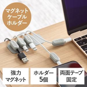 - マグネットケーブルホルダー 磁石式ホルダー5個入り 両面テープ固定 ケーブル落下防止 グレー EZ2-CA053 ネコポス対応