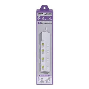 - ELPA エルパ 電源タップ 個別スイッチ AC 4個口 コード長 3m 雷ガード WLK-43S W(2587417)