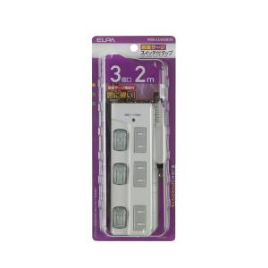 - ELPA(エルパ):LEDランプスイッチ付タップ3P2m WBS-LU302B(W) タップ スイッチ付 コード付