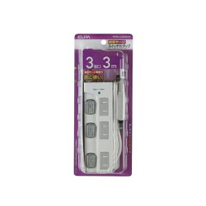 - ELPA(エルパ):LEDランプ スイッチ付タップ4P3m上 WLS-LU43EB(W) タップ スイッチ付 コード付