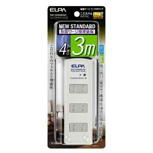 - ELPA(エルパ):耐雷 コード付タップ4P3m 白 WBT-4030SBN(W) タップ コード付 耐雷