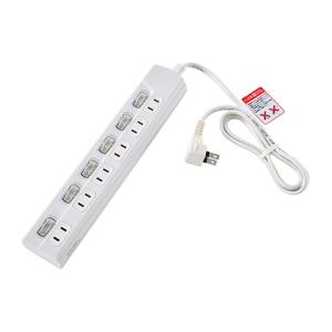 - 朝日電器 スイッチ付タップ 6個口2m WLS-LU62EB(W) コード付き電源タップ2ピン 電源タップ OAタップ 配線パーツ 家電