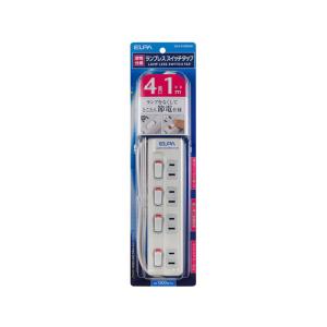 - LED 延長コード コンセント エルパ スイッチ付タップ 上差し W 4個口 1m WLS-LU41EB