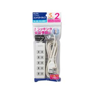 - 朝日電器 コンパクトタップ 2P5個口 2m LPT-502N(W) コード付き電源タップ2ピン 電源タップ OAタップ 配線パーツ 家電