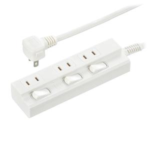 - 電源タップ オーム電機 雷ガード 個別押しボタンスイッチ付 カラー節電タップ3個口 2.5m 延長コード ホワイト HS-K1186W