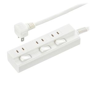 - 電源タップ オーム電機 雷ガード 個別押しボタンスイッチ付 カラー節電タップ3個口 1.5m 延長コード ホワイト HS-K1185W