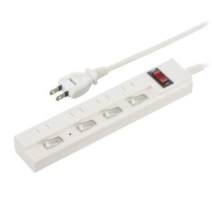 - オーム電機 雷ガード&個別押しボタンスイッチ付き 節電タップ 4個口 1.5m HS-K1187W 00-1187