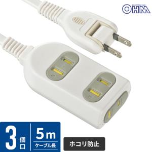 - オーム電機 3個口コンセント シャッター付 コード長5m_HS-T35HK3-W
