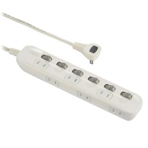 - オーム電機 発煙ガードスイッチ付タップ 6個口 1m HS-TP61HS3-W 00-5347