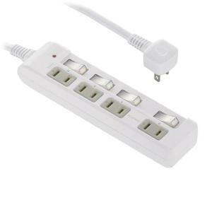 - オーム電機 雷ガード付節電タップ(コンセント4個口/3m/LEDランプ付個別スイッチ/L型プラグ/本体色ホワイト) HS-TPK43W-22 (00-1574)