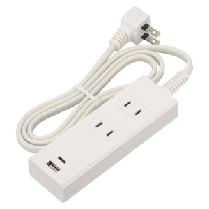 - オーム電機 HS-TU21PD23-W 2個口タップ PD対応Type-C/Type-Aポート付き 1m ホワイト [品番]00-1001