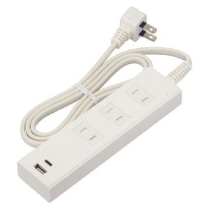 - オーム電機 HS-TKU31PD23-W 3個口タップ 雷ガード PD対応Type-C/Type-Aポート付き 1m ホワイト [品番]00-1005
