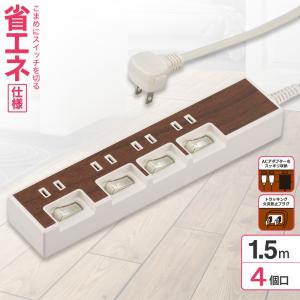 - 節電タップ 4個口 1.5m 木目調ブラウン|HS-TP415WD-T 00-5016 OHM オーム電機