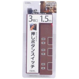 - オーム 押しボタンスイッチ付節電タップ(3個口 1.5m ブラック) OHM HS-T1146K(00-1146) 返品種別A