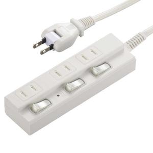 - オーム電機 安全タップ3個口 3mホワイト HS-T33SFW-22 00-1623