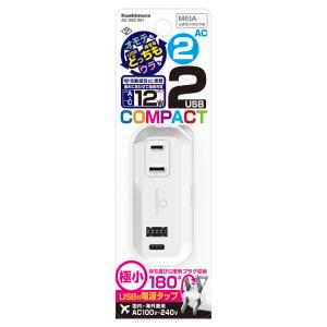 - 電源タップ 2AC2USB 2.4A リバーシブル 自動識別 ホワイト AC-031 (極小 充電 USB ACコンセント 白 カシムラ) 爆買